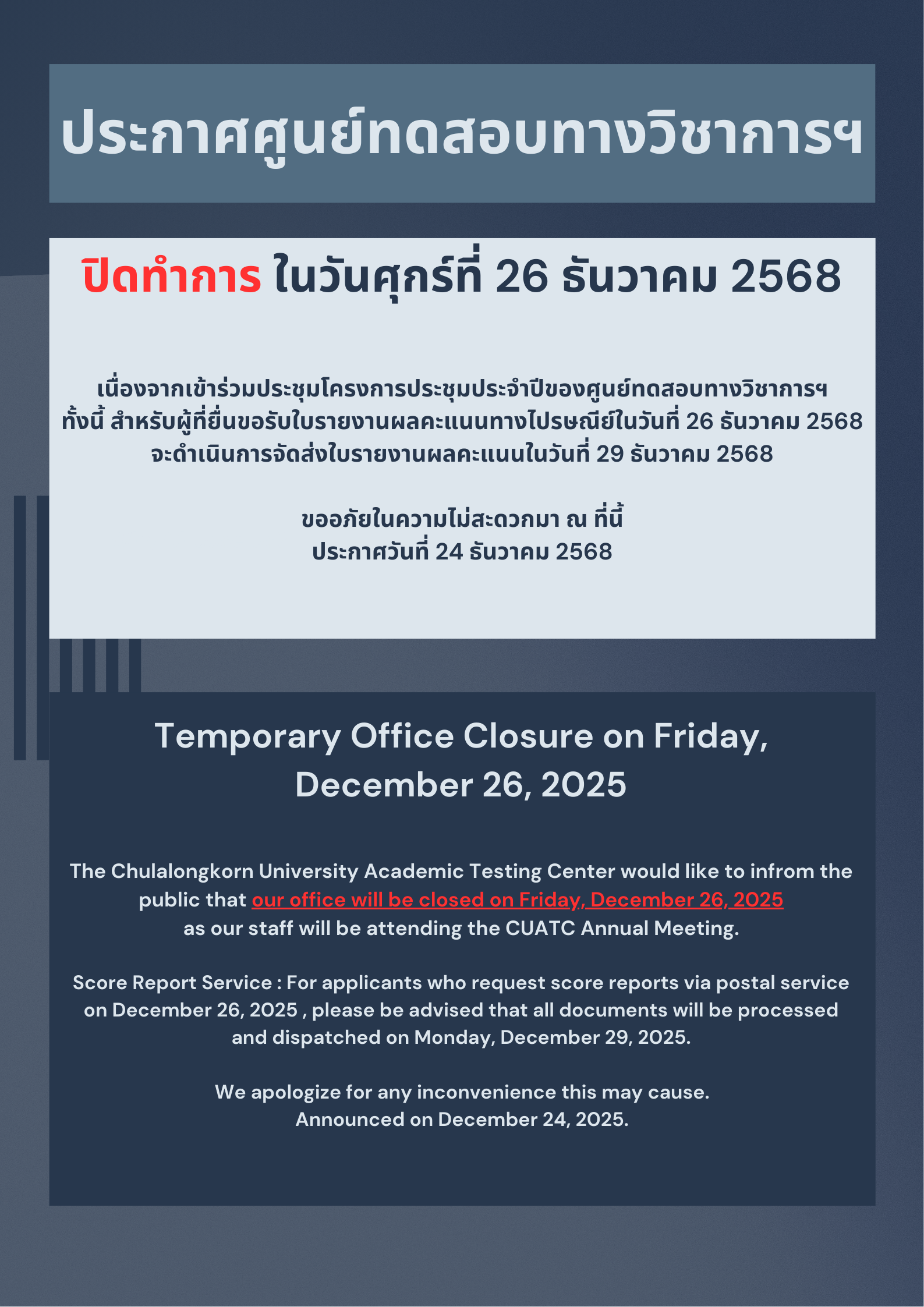 • ศูนย์สอบภูมิภาค เชียงใหม่
